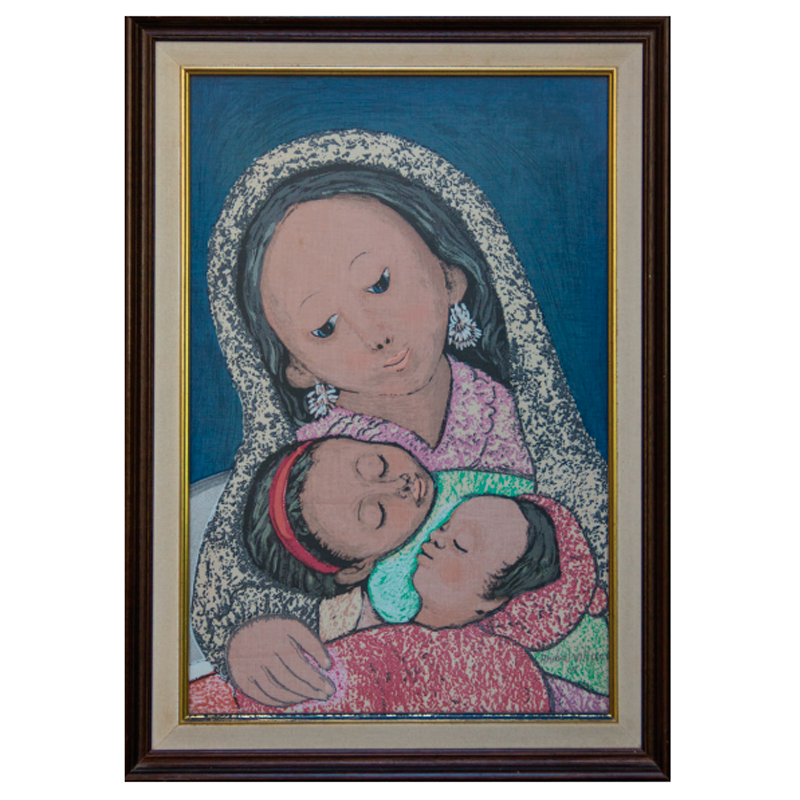 Nombre de la obra: Maternidad Autor: Anibal Villacís Técnica: Serigrafía Con marco: 49×68 Sin marco: 40×60